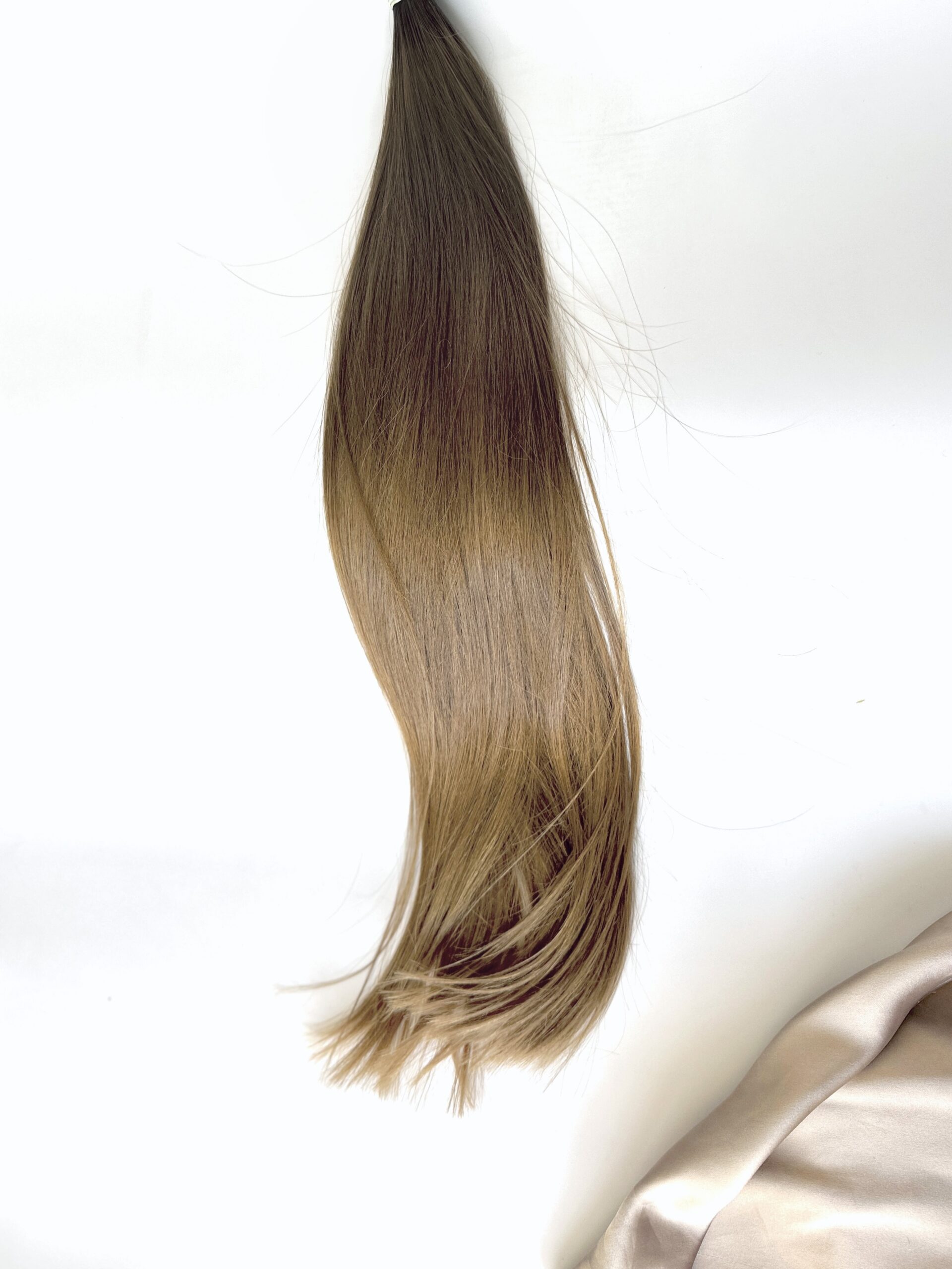 Selymes, puha tapintású, vékony-közép szálvastagságú, festetlen, vágott copf.